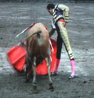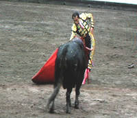 Muleta en la derecha. Una serie de redondos atropellados a un toro que tiene motor y picante.