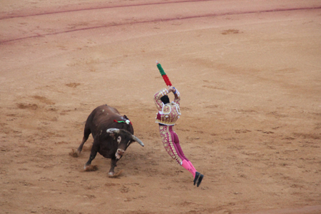 Redondos sueltos porque el toro, al carecer de afectividad de embestida, impide la ligazón de los mismos. “El Fandi” desesperado se va a por el estoque de matar.