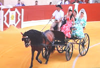 Los prolegómenos de la corrida se vieron amenizados por un desfile de dos carruajes sobre el albero de la plaza de La Montera. Uno de ellos tirado por un precioso caballo árabe de capa castaña y el otro por dos caballos de la misma raza cuyas capas eran tordas en fase blanca.
