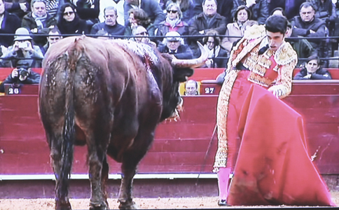 y nuevo desplante torero colocando el simulado sobre el testuz.