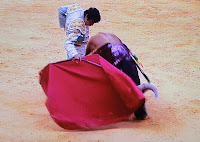 matador, Ponce, quien le administra una serie de capotazos por delante sin