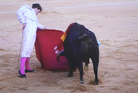 de la cual el novillo le engancha el capote por dos ces. Remate con una media