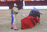 dobla con el de la izquierda. Sale de la cara del toro en busca de la espada de