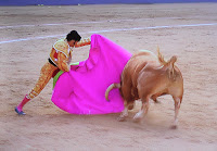 se dobla con el toro de capote tratando de enseñarle a embestir