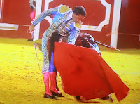 le complica mucho la suerte de matar. El toro se va a a las tablas .